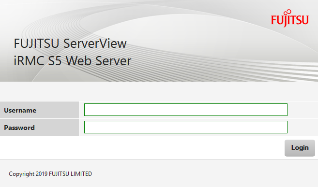 > | Enter the IP address of the iRMC of the MU. If the browser now displays a warning about the security certificate, click Continue to this website. The login window of the iRMC is displayed in the browser: