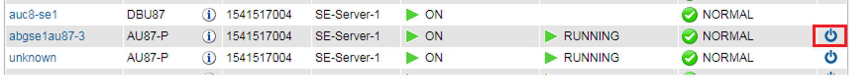 > | In the Units table click the Power on/off icon by the desired AU: |