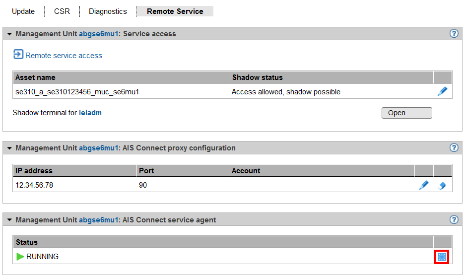 Select the Remote Service tab next to the MU in the Service menu: