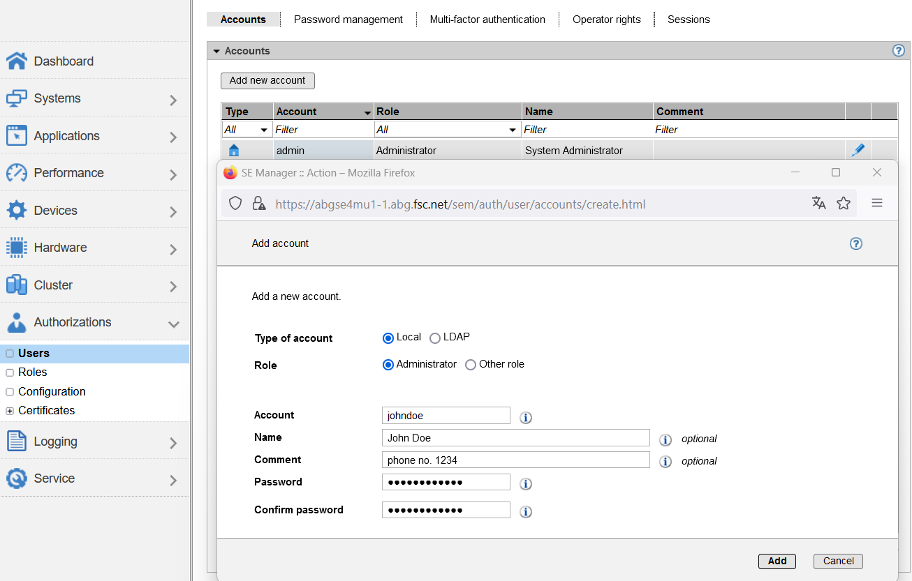 All accounts – local and LDAP – are valid for the whole Management Cluster. They are ready on every MU of every SE Server in the same measure.