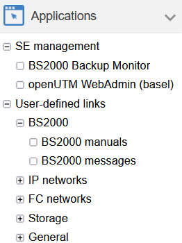 You manage applications using the Applications menu in the tree structure. A distinction is made between SE management applications and user-defined links.