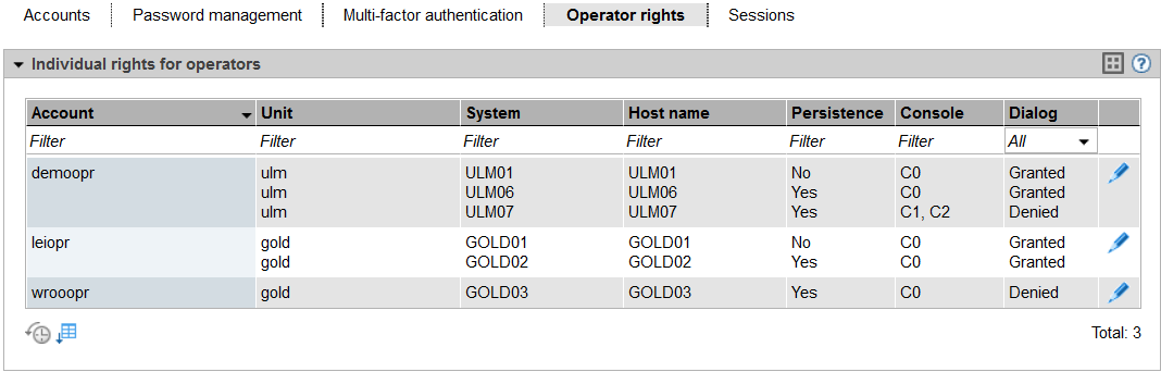 > | Click on the Change operator rights icon by the desired account. Assign the desired rights for the BS2000 operator in the following dialog. |
