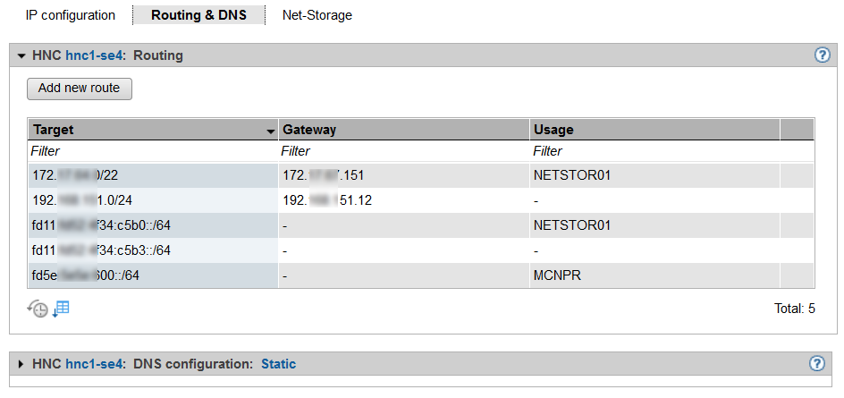 You manage routing of the HNC using the associated Management menu, Routing & DNS tab.