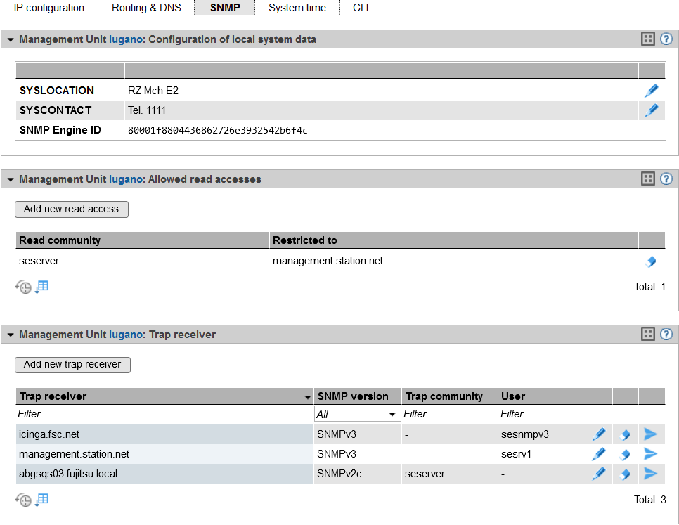 > Select Hardware -> Units -> [<se server> (SE<model>) ->] <unit> (MU) -> Management, SNMP tab: