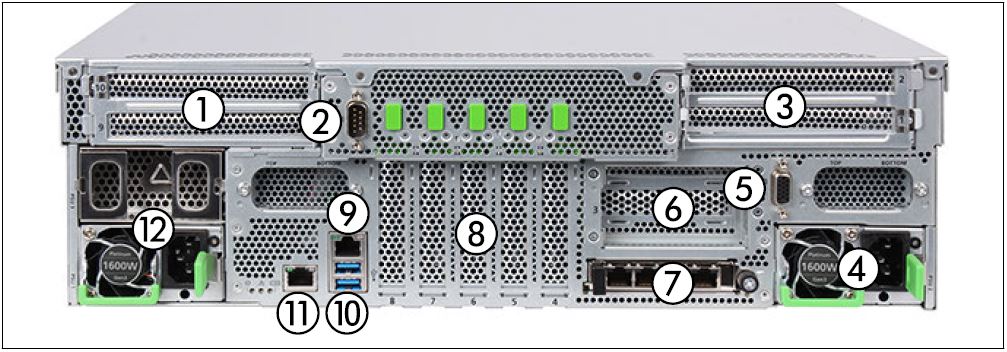 | 3 | PCIe slots 1 and 2 (riser module) |