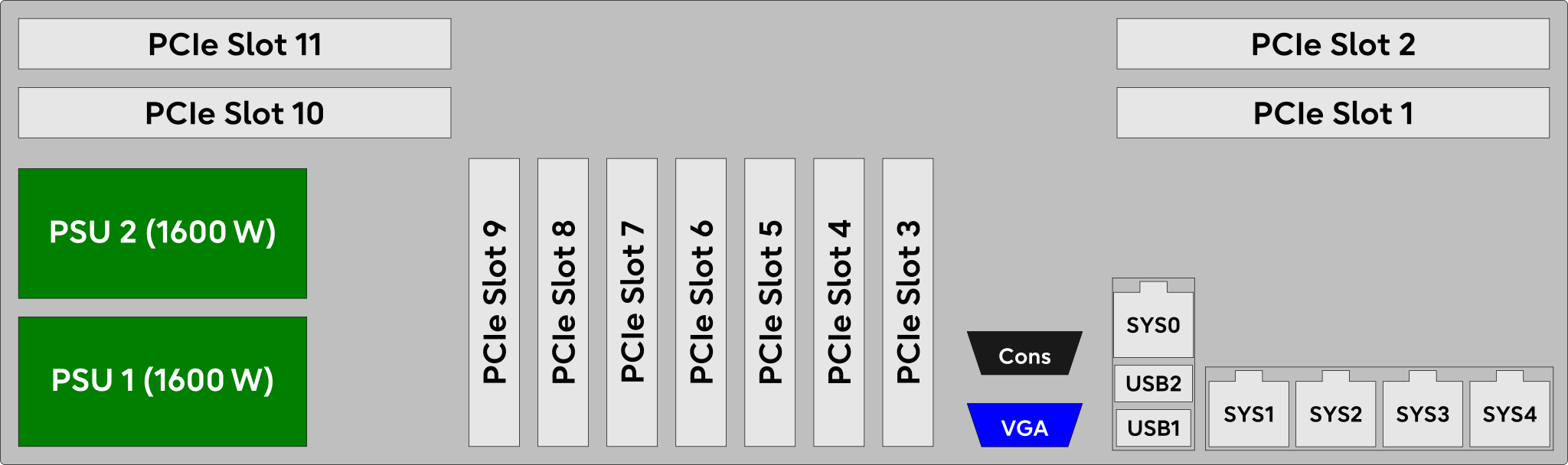 | 2 | PCIe slots 10 and 11 (riser module) |