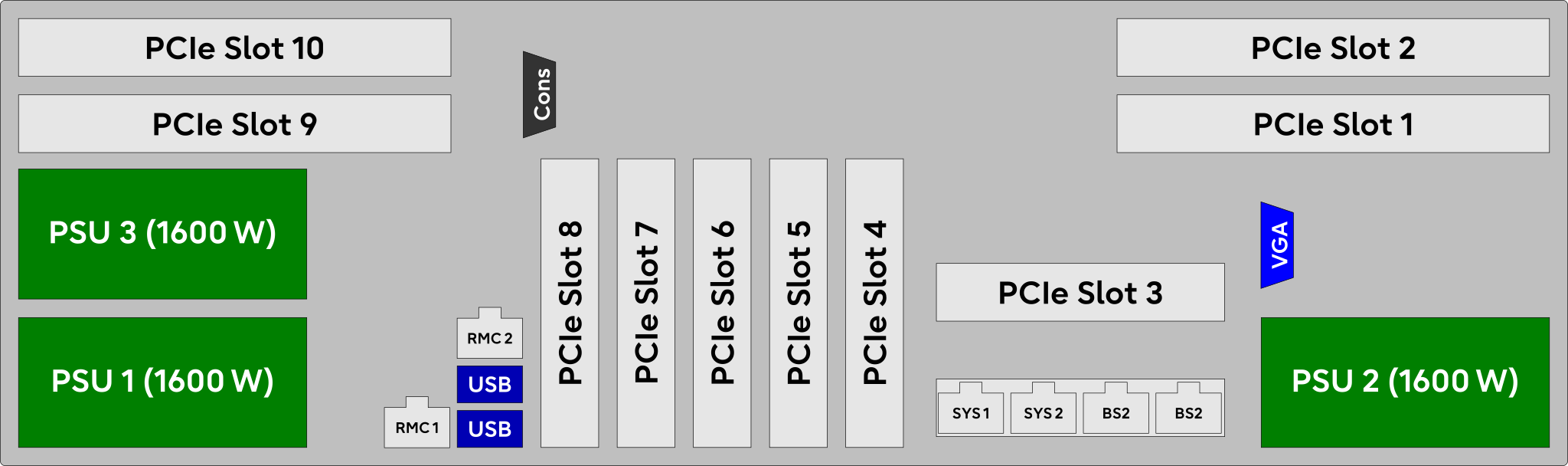 | 9 | PCIe slots 3 - 9 (low profile) |
