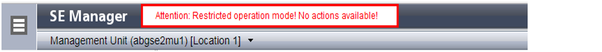 The functionality of the SE Manager is currently restricted! No actions possible!