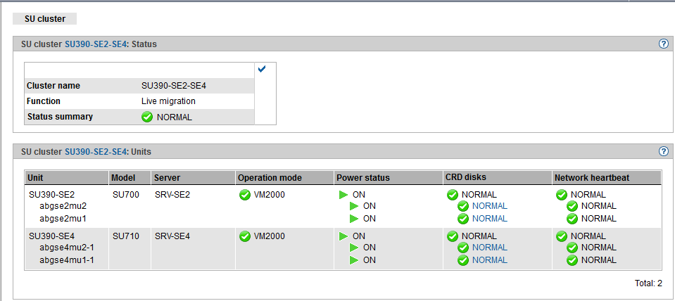 The second field contains a table with the SUs and their values that are relevant for the cluster functionality.