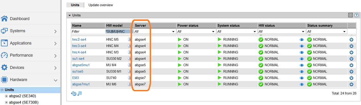 The messages in the Dashboard as well as in the global overviews through systems and units are both server-overarching.
