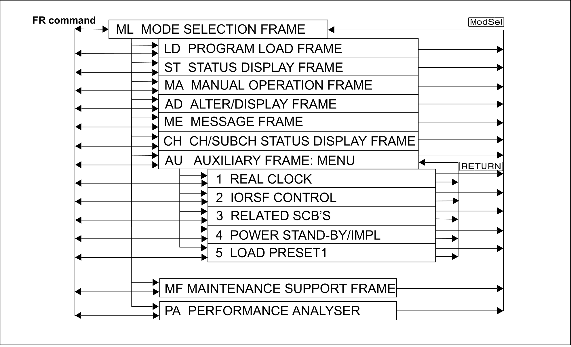 Each frame has an ID consisting of two letters derived from the frame name. In the above example the MODE SELECTION FRAME is also shown with the ID ML.