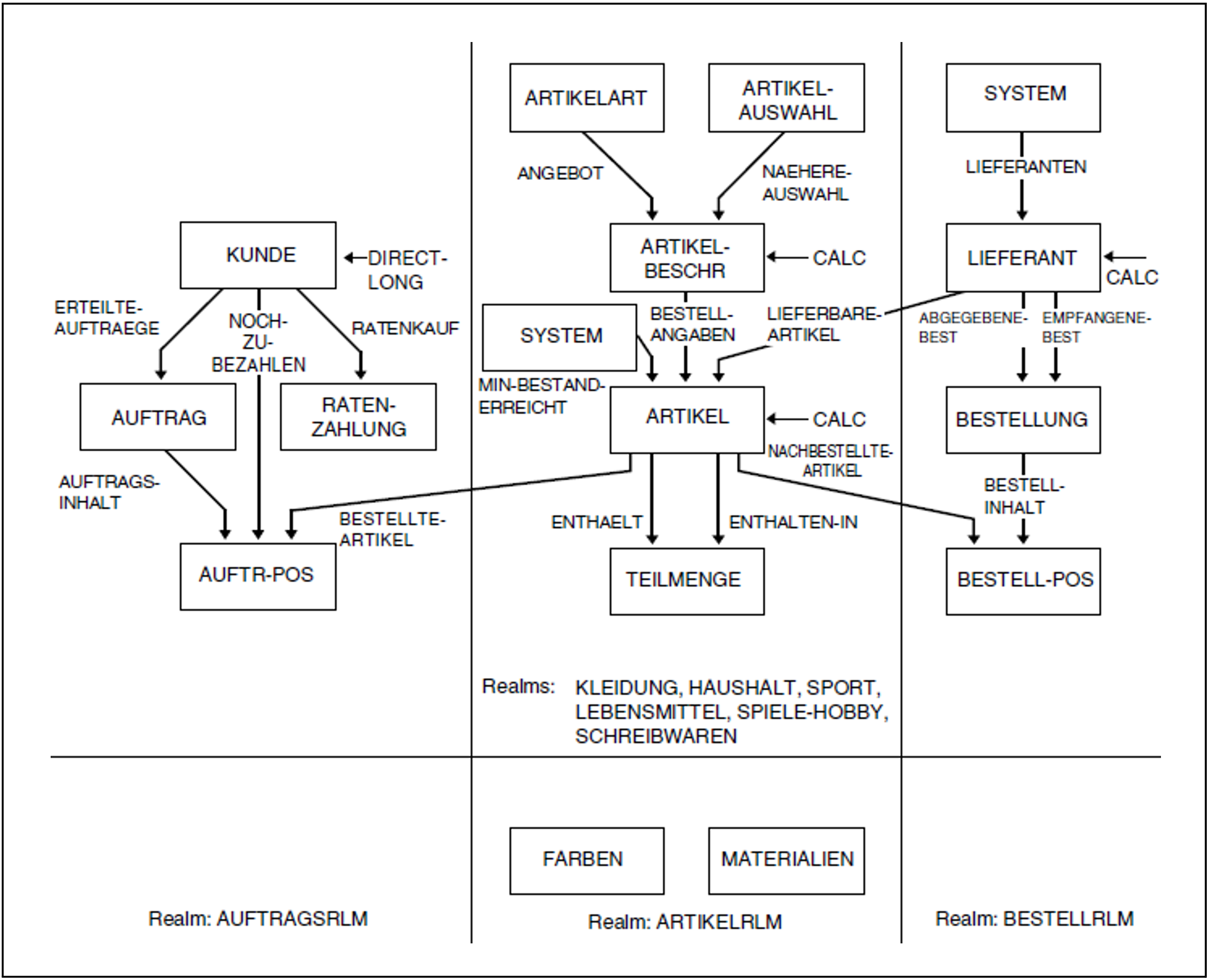 Zu den Beispielen in diesem Handbuch wurde eine Datenbankkonfiguration aufgebaut, die aus den folgenden vier Datenbanken besteht: