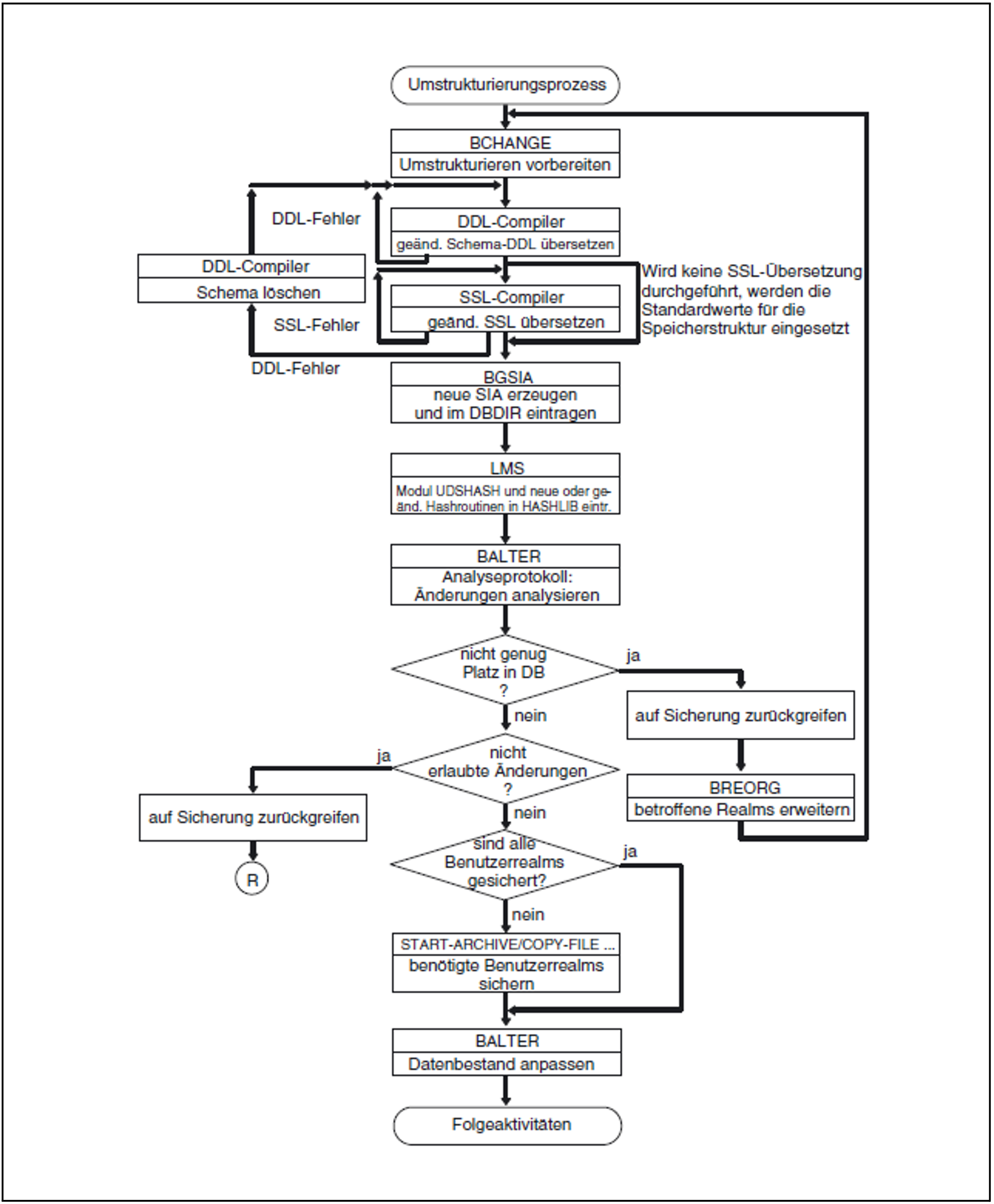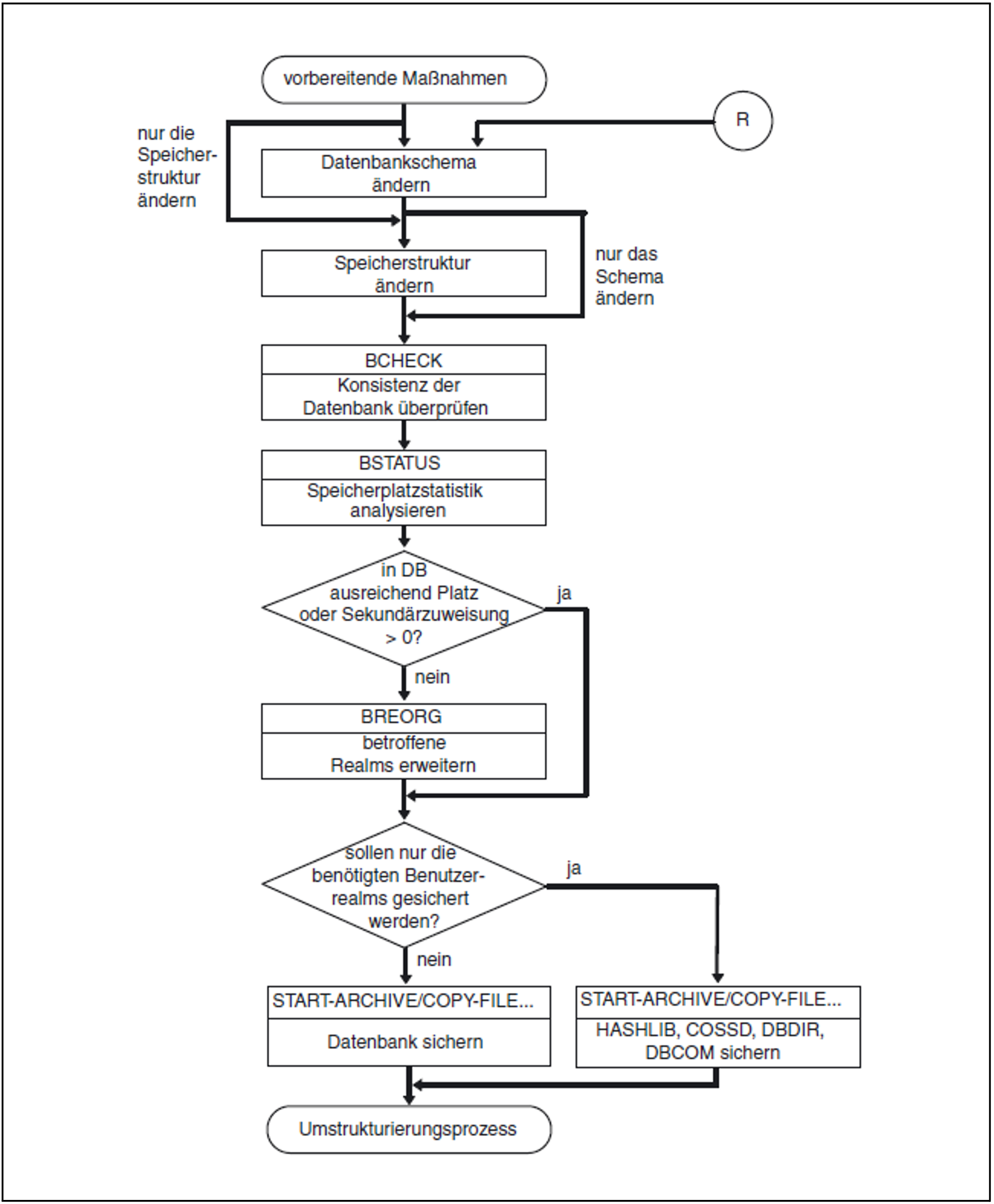 HASHLIB, COSSD, DBDIR und DBCOM vor dem Umstrukturierungsprozess sichern
