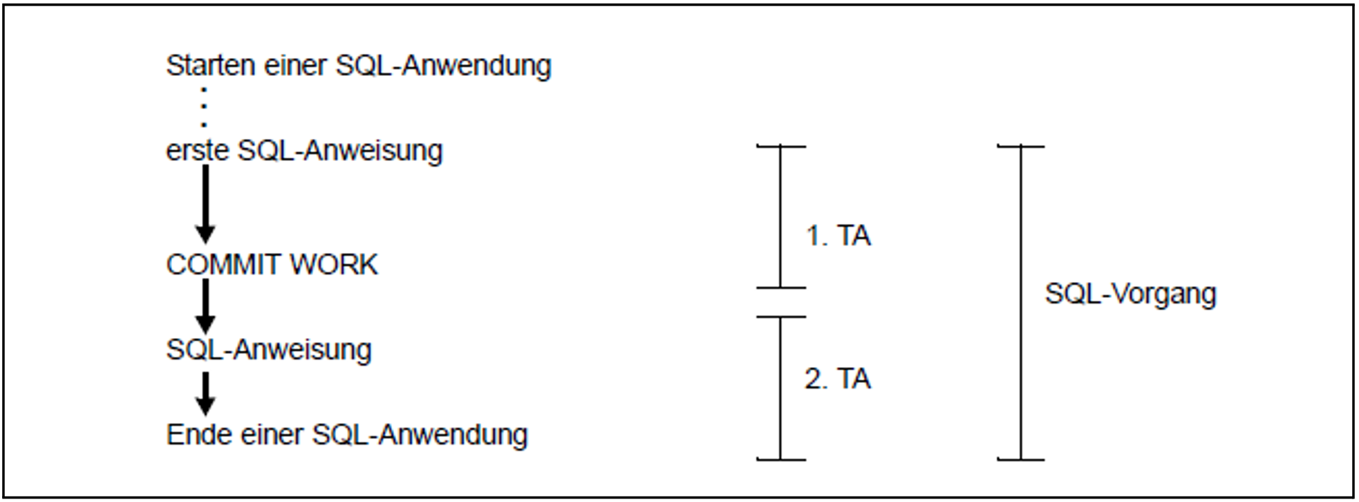 In einer SQL-Anwendung werden SQL-spezifische Verwaltungsdaten über Transaktionsgrenzen hinweg aufbewahrt. Eine solche Verwaltungseinheit wird als Vorgang bezeichnet.