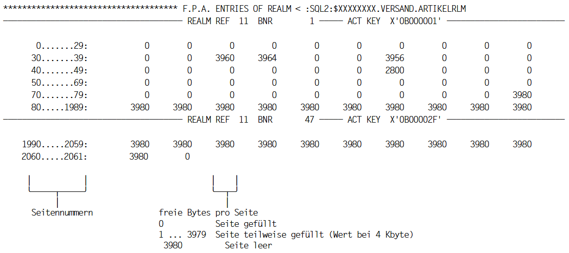 Die DISPLAY FPA-Anweisung druckt die FPA-Einträge eines Realm ganz oder teilweise aus. Sie können sie wahlweise angeben.