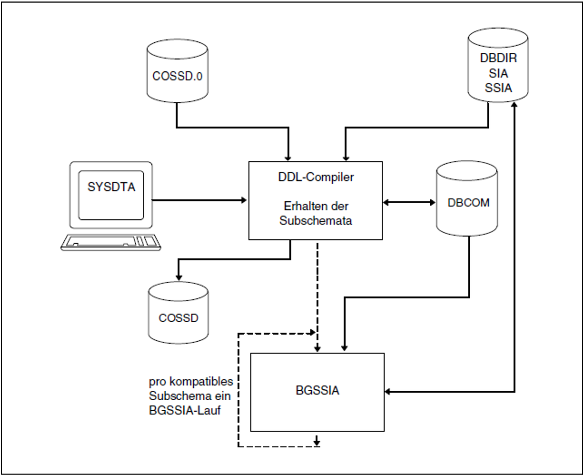 Bei dem Compilerlauf zum Übernehmen der Subschemata liest der DDL-Compiler aus der Datei COSSD.O alle alten Subschemata aus und prüft sie durch Neuübersetzen auf Verträglichkeit mit dem neuen Schema. Dabei unterscheidet er drei Fälle: