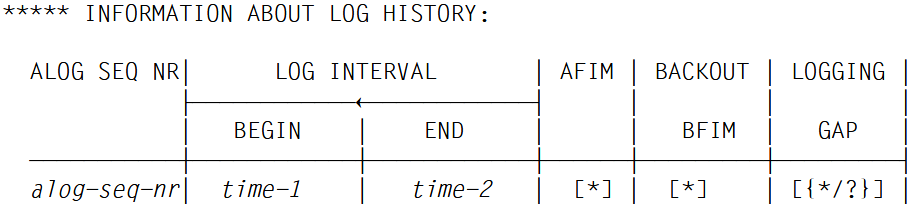 ALOG SEQ NR! LOG INTERVAL ! AFIM !BACKOUT! LOGGING !