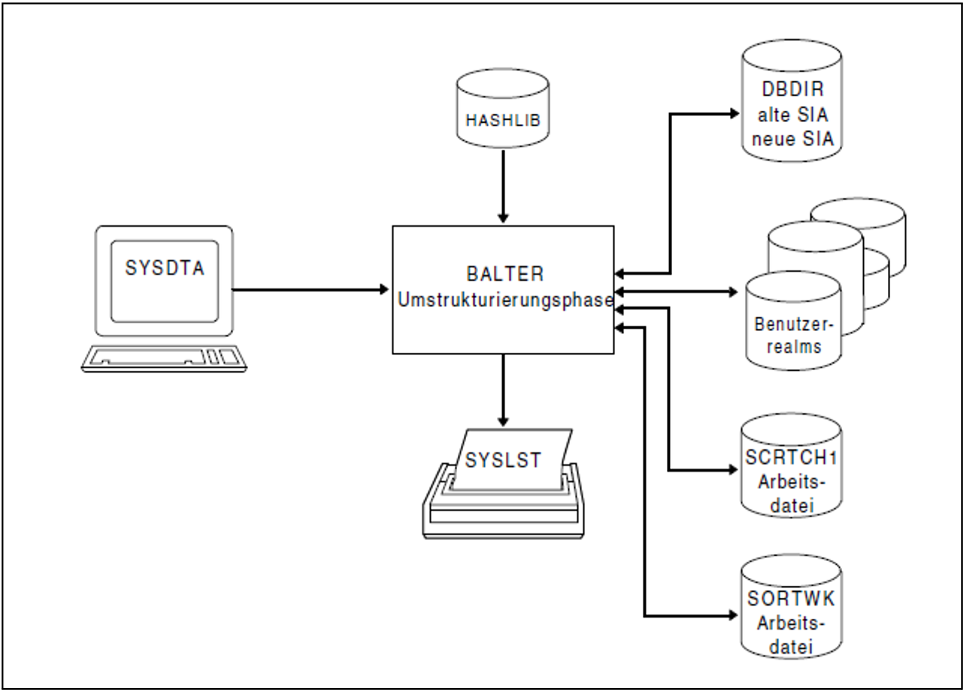 BALTER benötigt während der Umstrukturierungsphase auf Platte zwei Arbeitsdateien, die er automatisch unter der entsprechenden Benutzerkennung auf gemeinschaftlicher Platte anlegt und nach normaler Beendigung des Laufs wieder löscht.