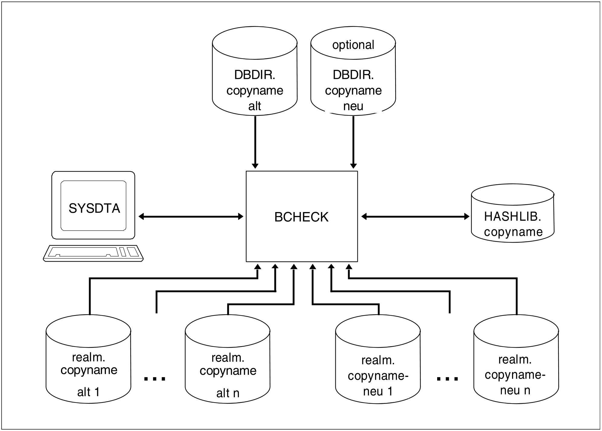 BCHECK prüft bei jedem Prüflauf die Datenbanken auf Kohärenz, auf deren DBDIR er zugreifen kann. Er prüft auf Kohärenz: