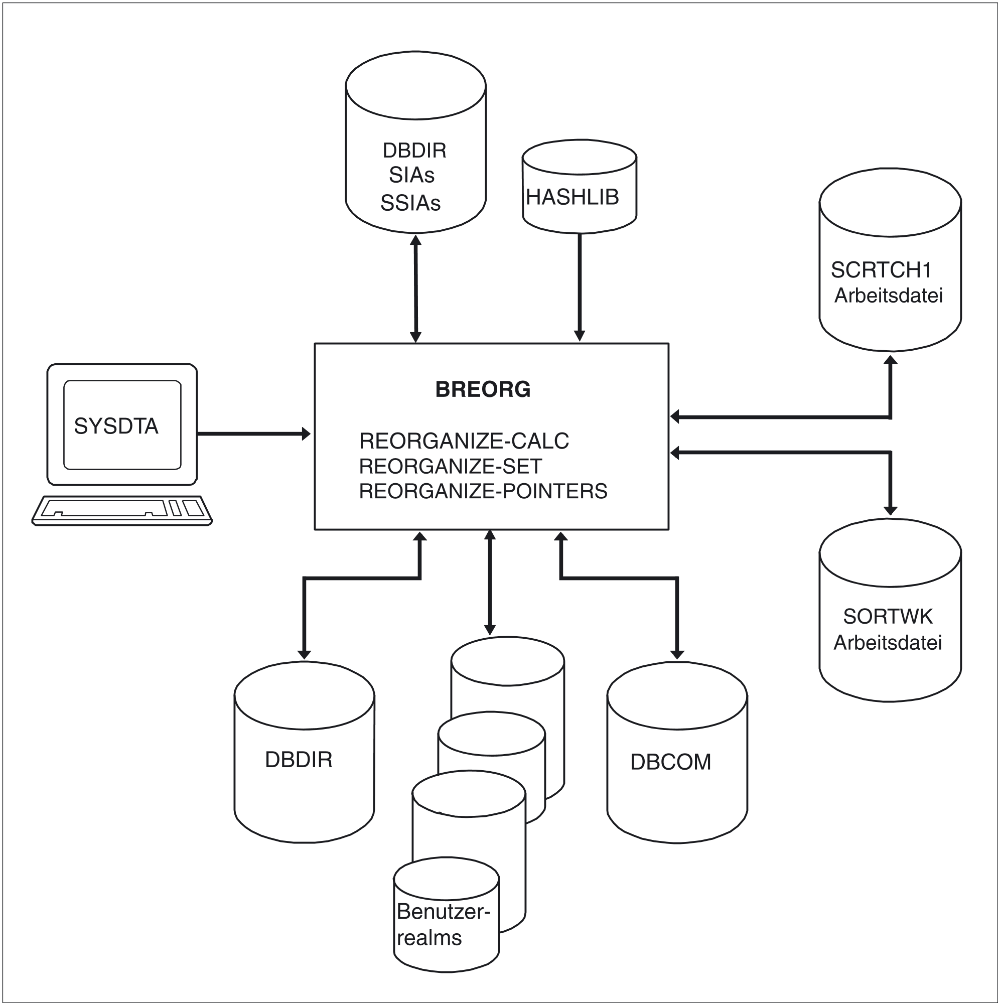 BREORG benötigt zum Ablaufen Informationen über die Bereiche, Sets, Satzarten und Tabellen, die zu reorganisieren sind. Diese Informationen bezieht er aus der Schema Information Area (SIA) des zugehörigen Schemas.