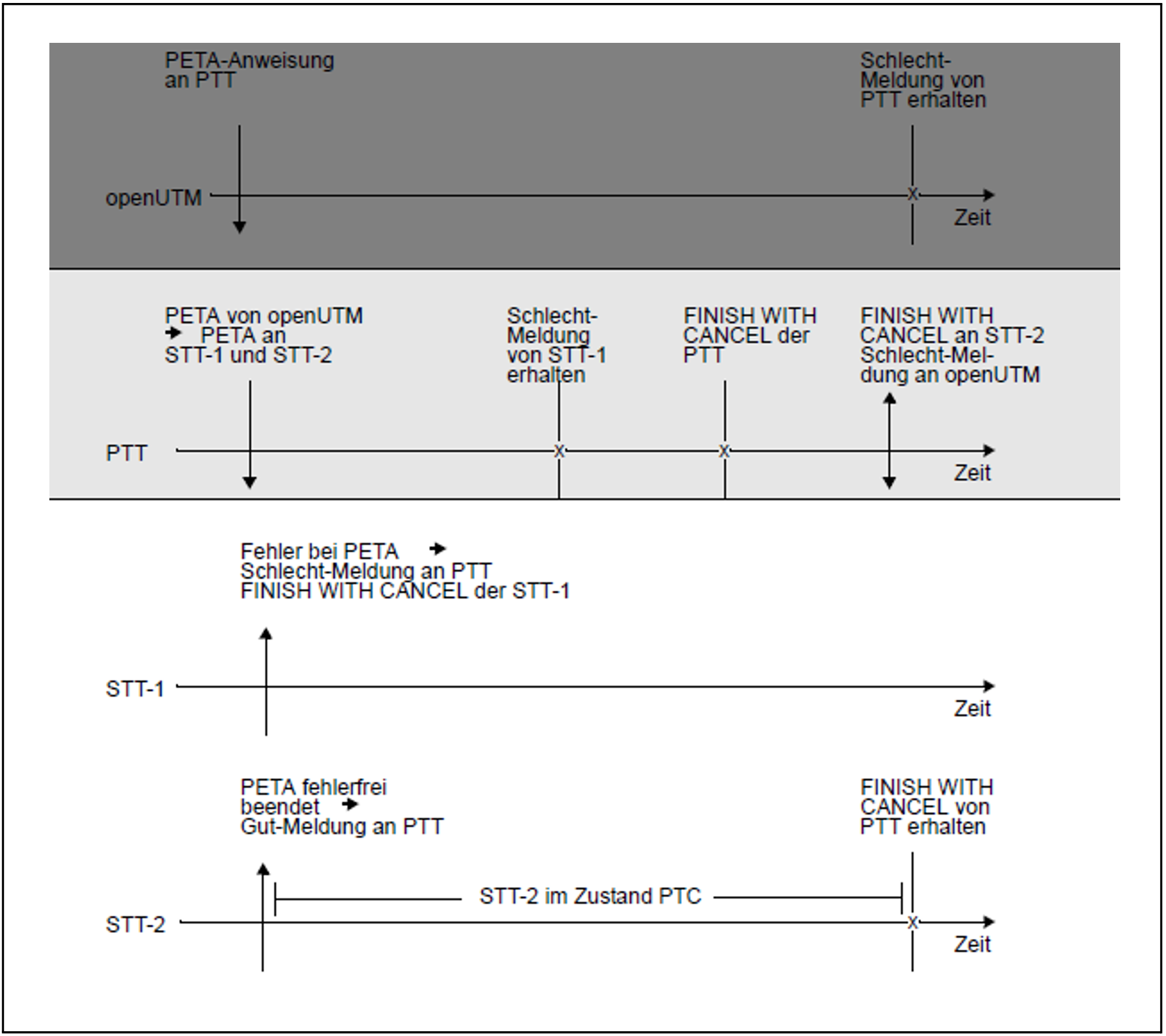 Bild 21: Zeitlicher Ablauf eines gescheiterten Zwei-Phasen-Ende-Protokolls bei Verteilung über UDS-D und openUTM