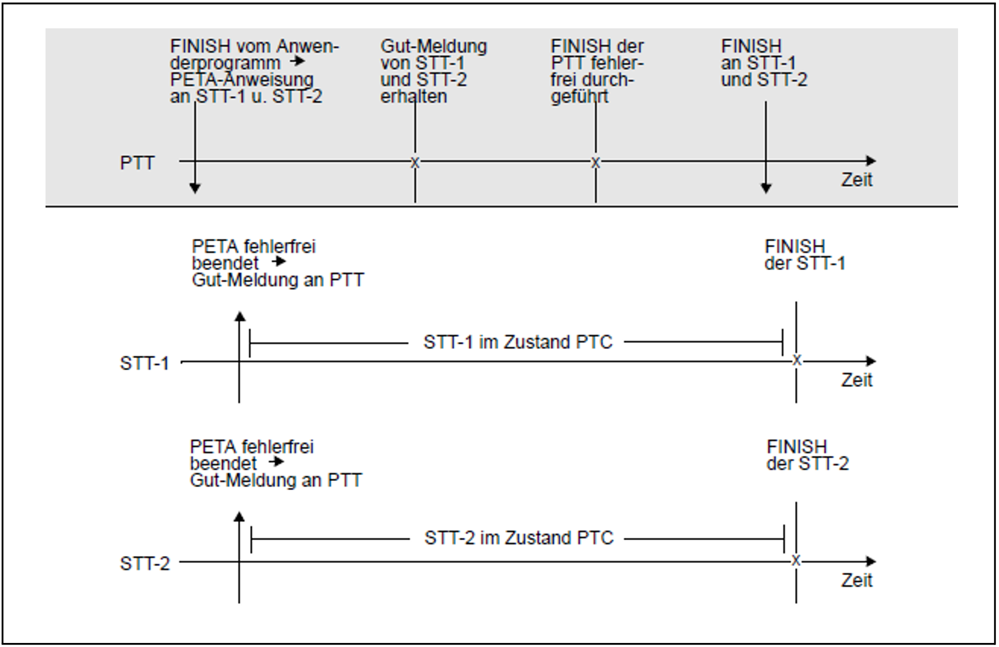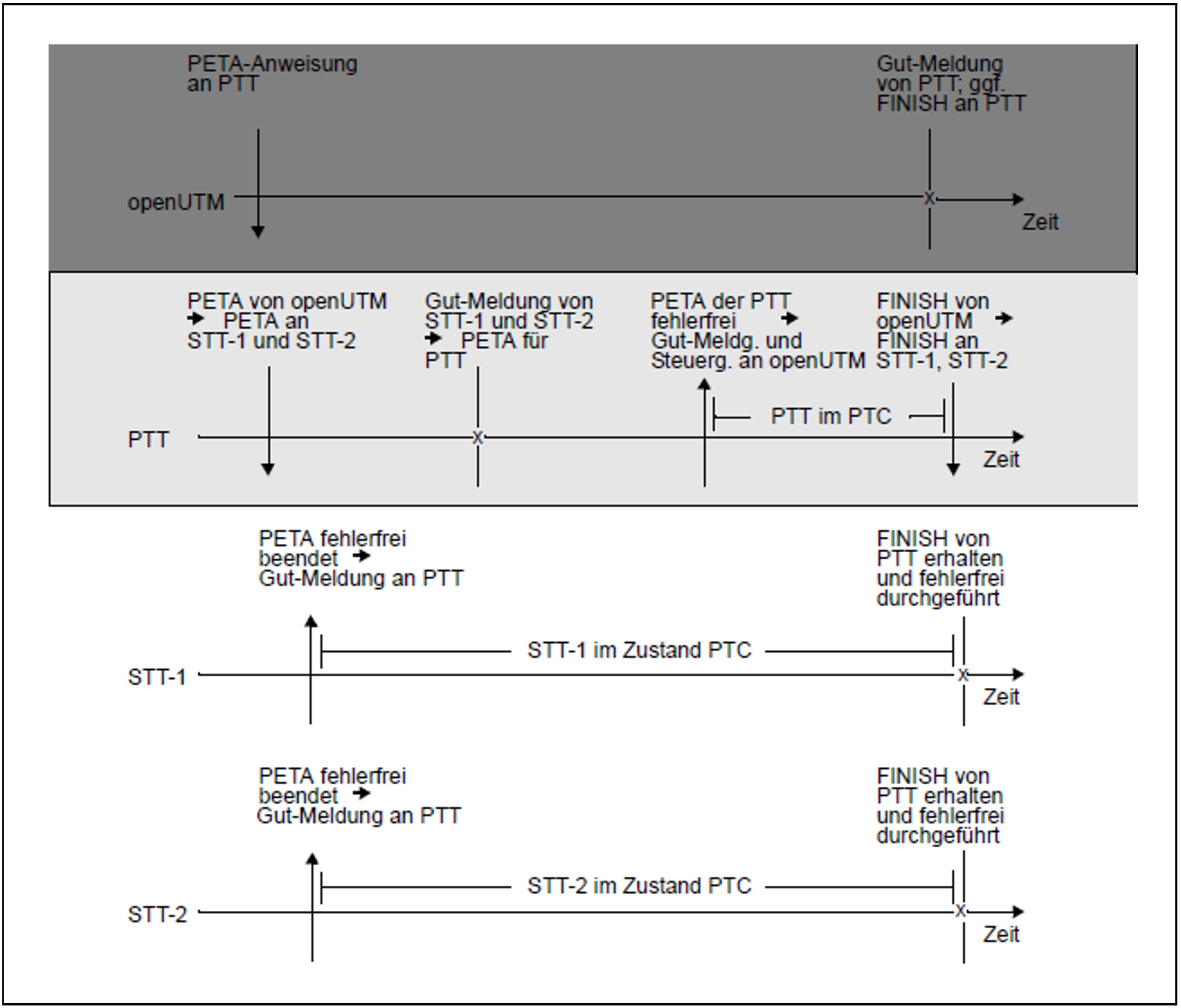 Die folgenden Bilder zeigen die Aktionen der einzelnen Teiltransaktionen und den Zustand PTC