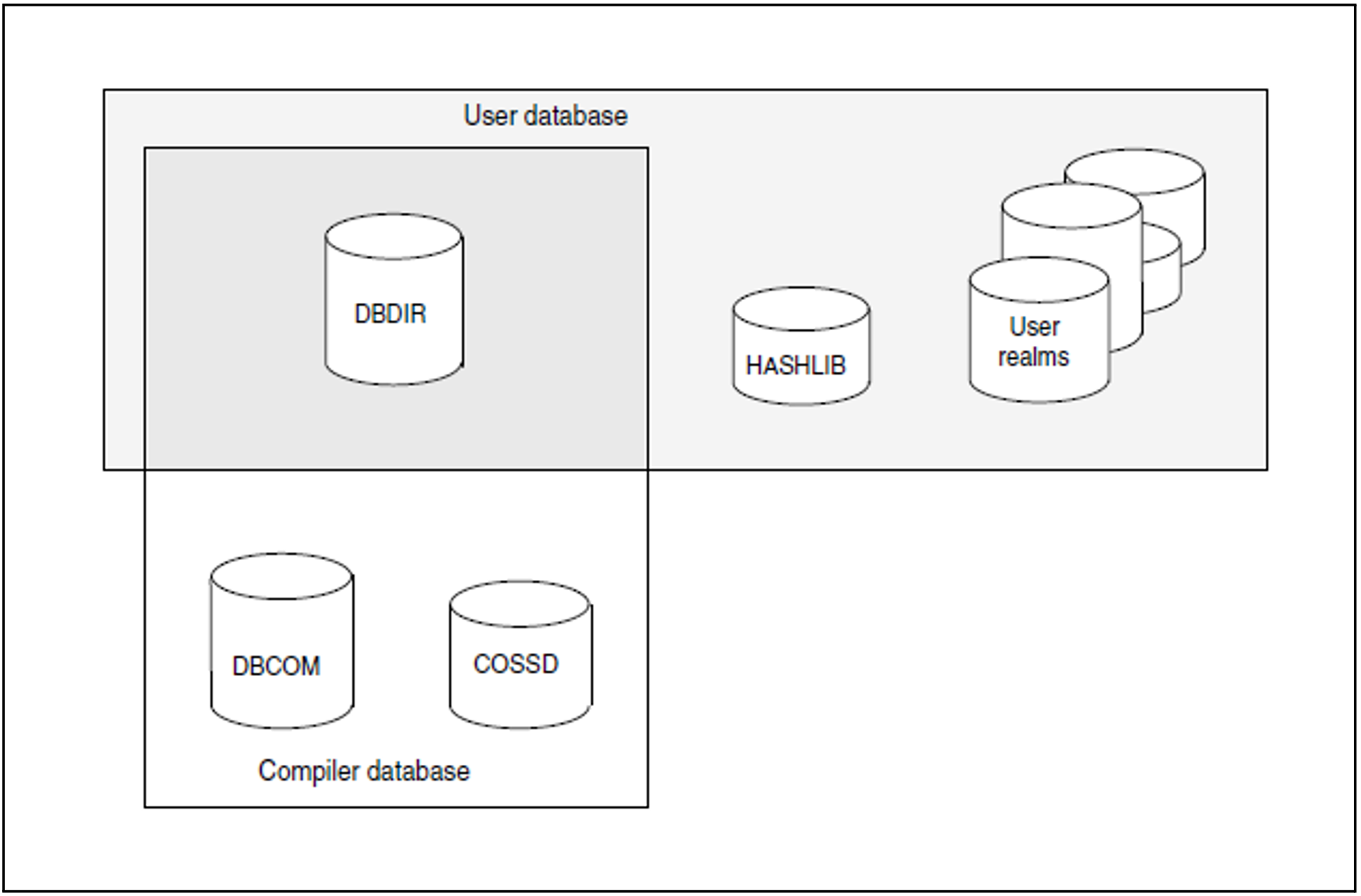 In addition to the files belonging to the user and compiler databases, certain other files are necessary for data security and for setting up the connection to the database.