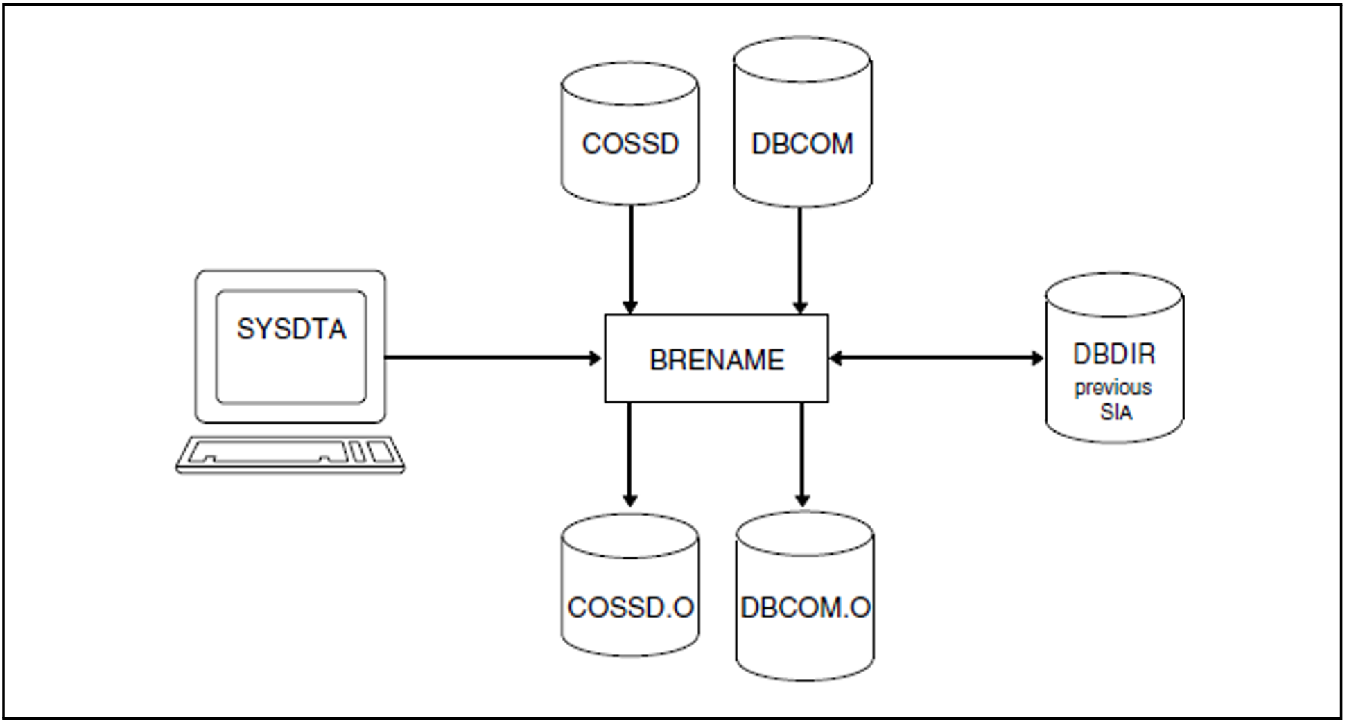 The task of BRENAME when renaming a database is comparable to that of BCREATE when creating a database: BRENAME prepares the compiler database to incorporate the new schema. Specifically, BRENAME performs the following preliminary work for renaming: